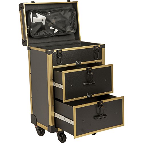 -. Binding : Health and Beauty -. Brand : SunRise -. Color : Black Matte -. EAN : 0616639402629 -. Feature : 360 degree rolling 4 wheels detachable rolling system / Removable liquid foundation holders on top compartment (up to 45 bottles) / Bottom slide out padded drawer to hold nails and another beauty accessories with divider / Extra base slide out padded drawer to hold larger items / Overall case dimension: 14" x 10" x 22.75" -. Label : JUU8C (Beauty) -. Manufacturer : JUU8C (Beauty) -. Model : C6029PPBG -. MPN : C6029PPBG -. NumberOfItems : 1 -. PackageQuantity : 1 -. PartNumber : C6029PPBG -. ProductGroup : Beauty -. ProductTypeName : BEAUTY -. PublicationDate : 2016-06-24 -. Publisher : JUU8C (Beauty) -. ReleaseDate : 2016-06-21 -. Studio : JUU8C (Beauty) -. Title : Sunrise C6029 Professional Beauty 4 Wheels Rolling Nail Makeup Artist Storage Train Case, Black Matte -. UPC : 616639402629