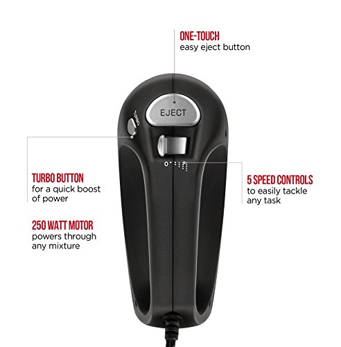 EASY EJECT: One-touch easy eject button for swapping out chrome plated Beaters and FREE included bonus Dough Hooks
