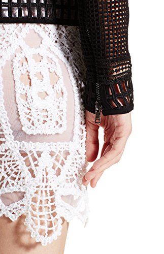 Zip-front jacket in open grid-knit mesh with lace inserts
