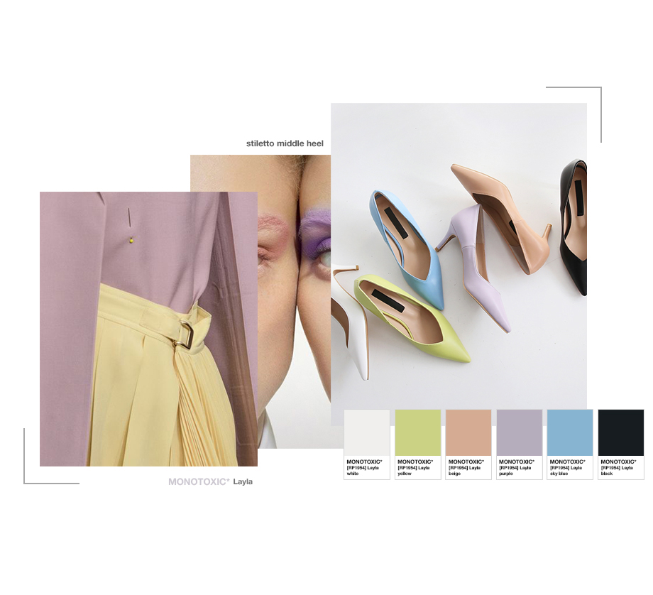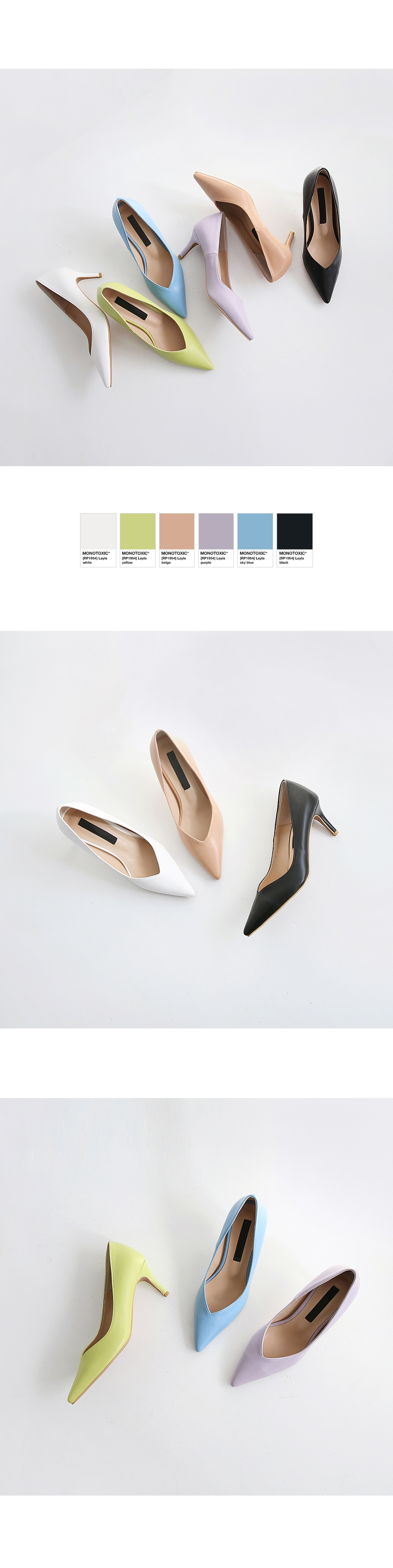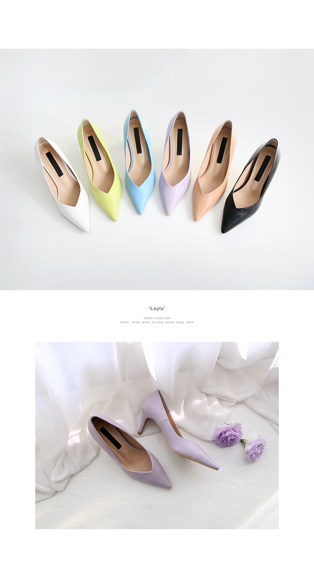 Spring color stiletto pumps. 색감이 참 어여쁜 스틸레토 펌프스입니다. 스틸레토쉐입과 어우러질수 있도록 뾰족하게 오픈되어있는 발등라인이 독특하며 미들굽타입으로 안정감까지 선사합니다.