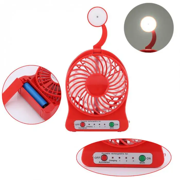 Portable USB Mini Fan Rechargeable USB Desk Pocket Mini Fan With LED Light Travel QJY99
