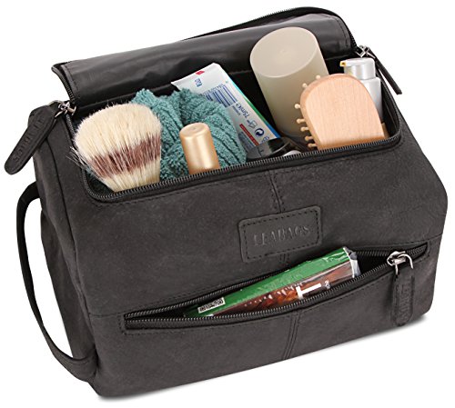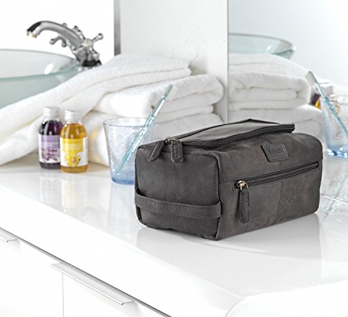 -. Brand : LEABAGS -. Feature : Highlights: genuine buffalo leather - Top quality - Classy vintage look / Features: thanks to the fine stitching and the excellent manufacturing, this genuine leather bag is a stylish and loyal companion for your everyday life. / Measurements (L x W x H): approximately 9,8 x 4,7 x 6,3 in / This toiletry bag is perfect to store or carry your toiletries. The inner lining is water resistant and washable. / This Toiletry bag was attentively designed, down to the smallest detail. It is the perfect accessoire to complete your lage set! -. ProductGroup : Apparel -. ProductTypeName : APPAREL -. Title : LEABAGS Palm Beach genuine buffalo leather toiletry bag in vintage style
