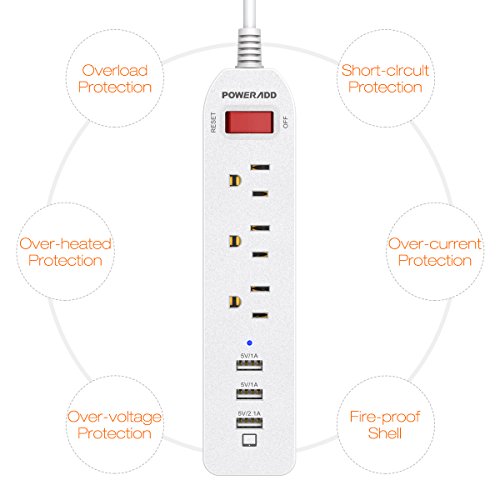 Poweradd Advantage: 3 AC outlets & 3 USB ports for your home and office electrical appliances such as computer, laptop, printer, modem, speakers, mp3 cellphone, tablet and more.