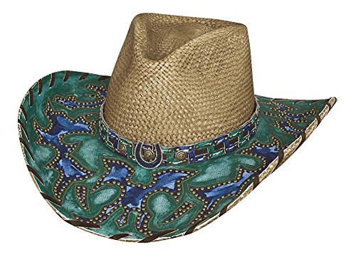 Studio : Bullhide Hats Publisher : Bullhide Hats Binding : Apparel Product Description Montecarlo Bullhide Hats "WIND OF CHANGE" You are looking at a brand new, with tags, Genuine Panama Straw Cowboy Hat. This hat is called Wind Of Change, made by Montecarlo Hats. Item #2737. This Hat will turn every head in the house! Brim: 4" Material: Genuine Panama Straw Color: Natural (with blue and green on brim) Size Chart: Small = (6-3/4in. to 6-7/8in.), or (21-1/8in. to 21-1/2in.), or (54 to 55 metric) Medium = (7in. to 7-1/8in.), or (21-7/8in. to 22-1/4in.), or (56 to 57 metric) Large = (7-1/4in. to 7-3/8in.), or (22-5/8in. to 23in.), or (58 to 59 metric) X-Large = (7-1/2in. to 7-5/8in.), or (23-1/2in. to 23-7/8in.), or (60 to 61 metric) 0