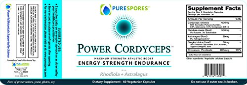● ENERGIZE YOUR EXERCISE: Power Cordyceps combines high-potency Cordyceps from the mushroom body (not from the less potent mycelium) with complementary Rhodiola, Astragalus and Gingko extracts and Chromium Picolinate to support energy levels and strength, boost resistance to exertion, increase stamina and enable a quicker recovery from exercise.
