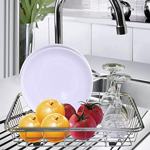 Adjustable Drying Rack, Aiduy Dish Drainer Over Sink Dish Rack Kitchen Stainless Steel Vegetable Fruit Holder