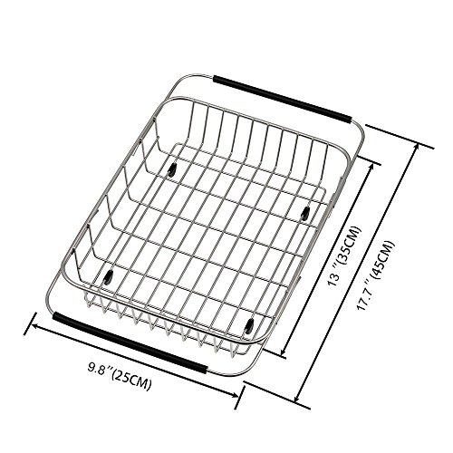 ADJUSTABLE SIZE - The dish drying rack is a great space saver especially for small kitchens. Dimensions: 13"L*9.8"W*4.3"H, can fully extend to 17.7"L to fit most sinks with the adjustable arms.
