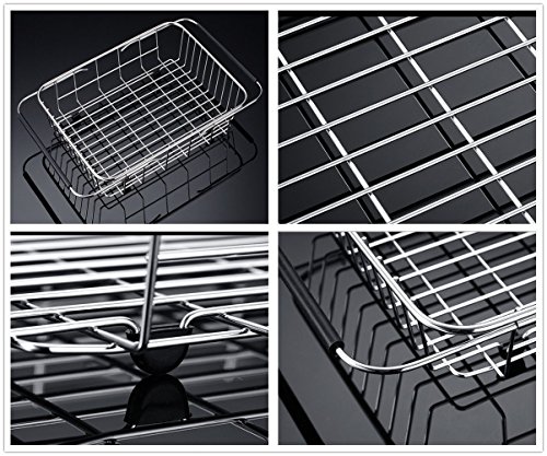 PREMIUM MATERIAL - The dish drainer rack is made of top 304 stainless steel, which is rustproof, durable, non-slip and easy to clean.