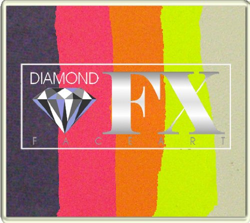 -. Feature : Diamond FX Splitcake 50g Fabulously Fierce includes Metallic Purple, Neon Magenta, Neon Orange, Neon Yellow & White in a rectangular container (2.5" x 2.0" x 0.5") with a clear plastic lid. / Professional, cosmetic grade, water-based/water activated face & body paint with no perfume. / High concentration of pigment, opacity & vivid colors: can be painted over any color, even white on black while still maintaining its brightness and density. / Can be used with brush or sponge. / Manufactured according to the EEC and FDA regulations.