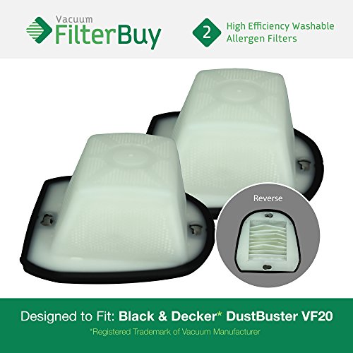 2 - Black and Decker VF20 Washable HEPA DustBuster Filters, Part #VF20, 499739-00. Designed by FilterBuy to fit Black & Decker Double Action V series DustBusters Hand Vac