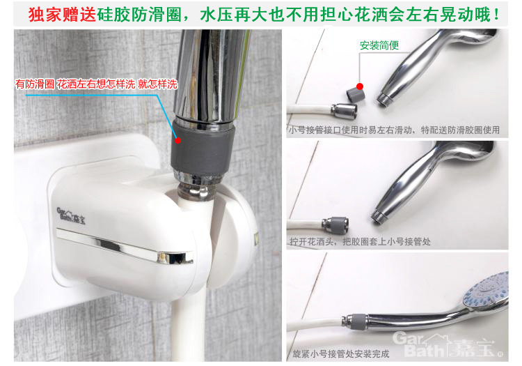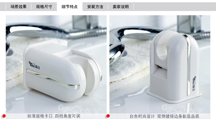 承重5公斤,旋转式卡座,可上下调整花洒角度(4档约30度),让淋浴方式更自由;