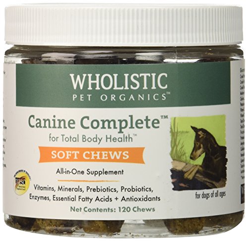 A super-premium soft chew that provides your pet with a complete array of vitamins, minerals, enzymes, essential fatty acids, powerful antioxidants, and digestive microflora! High bioavailability is ensured by the use of pure, organic, whole-food sources. If you are tired of using several different supplements in the never-ending quest for optimum nutrition for your pet, then look no further. Not only does Wholistic Canine CompleteTM offer all required nutrients in a whole-food form that is easily and readily digestable, but it offers the highest quality of premium ingredients! No other supplement comes close in offering the quality and quantity of nutrients that are a staple of the Wholistic Pet Organics® full line of supplements and food. There are approximately 52 tablespoons (156 teaspoons) in every pound of Wholistic Canine CompleteTM. A one pound container will last a 30 pound dog 52 days, or almost 2 months! Very cost effective for a product that provides your pet with such powerful nutrients for maximum nourishment! In addition, the largest of dogs require just two tablespoons daily.Feature