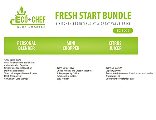 Eco Chef Fresh Start Bundle - 3 kitchen essentials at a great value price. Comes with a personal blender, mini chopper, and citrus juicer