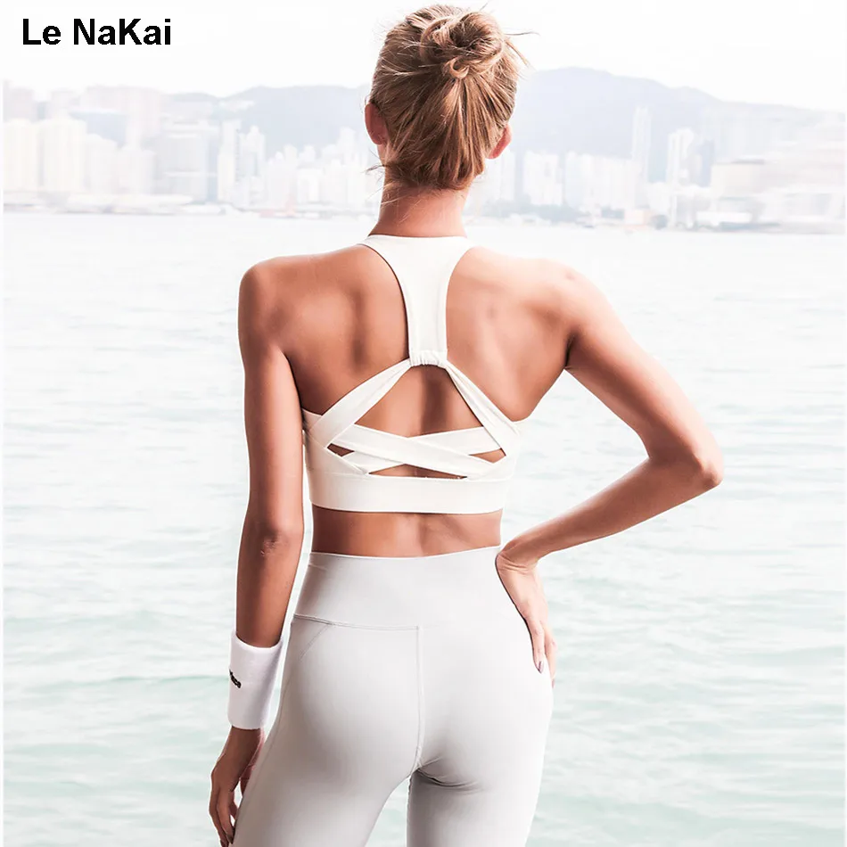 Item:High support strap sports bra cross back padded retro yoga top bra