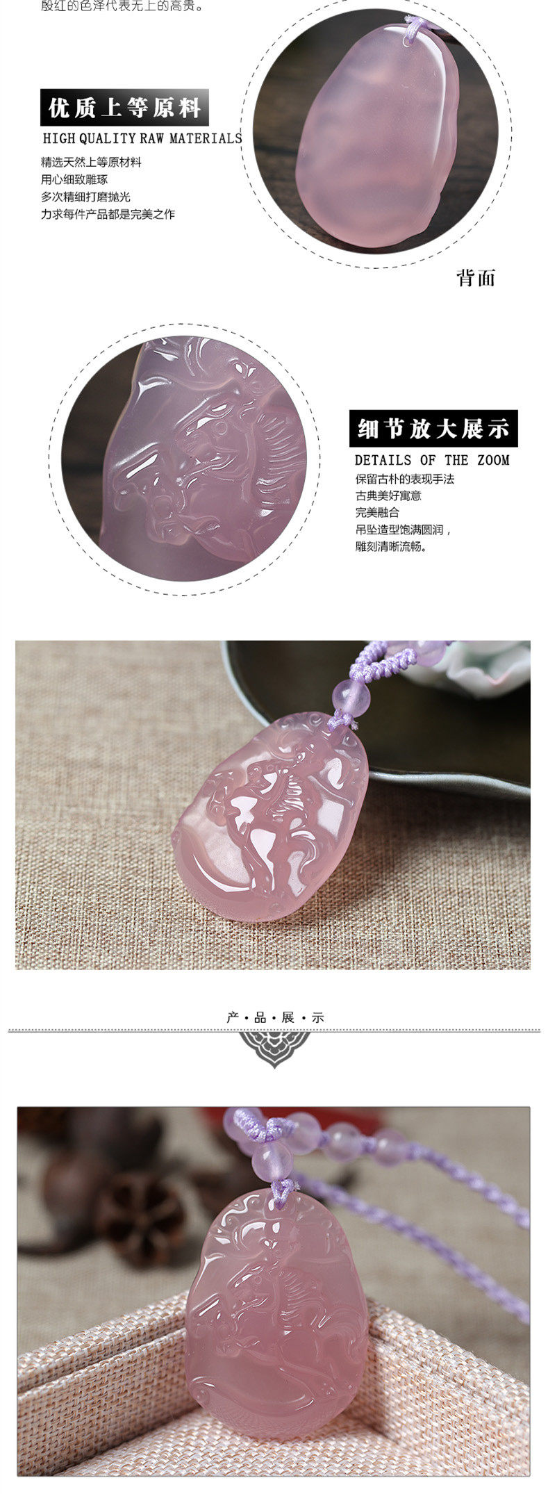 开光天然粉紫玉髓十二生肖马神骏登峰七星堂午府玄星午皇合寅吊坠