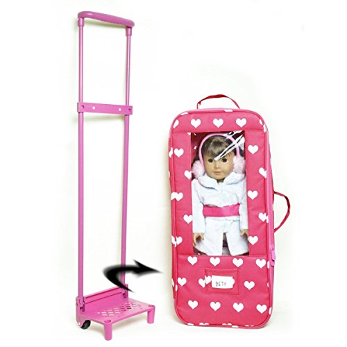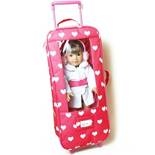 -. Binding : Toy -. Brand : The New York Doll Collection -. EAN : 0682017401409 -. Feature : Super cute doll suitcase fits american girl doll or 18" doll / Smooth-rolling wheeled trolley with adjustable pull handle has storage for doll and acessories / Convenient clear, vinyl display window / Card holder for name personalization - girls will love it! / Made by The New York Doll Collection, offering the highest quality 18" Doll Furniture, 18" Doll Clothes, 18" Doll Shoes and 18" Doll Accessories! -. IsAdultProduct : 0 -. Label : The New York Doll Collection -. Manufacturer : The New York Doll Collection -. MPN : 3265424 -. PartNumber : 3265424 -. ProductGroup : Toy -. ProductTypeName : TOYS_AND_GAMES -. Publisher : The New York Doll Collection -. Studio : The New York Doll Collection -. Title : Doll Travel Case Suitcase Storage Bag for 18 Inch Dolls with window -. UPC : 682017401409