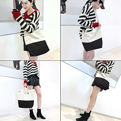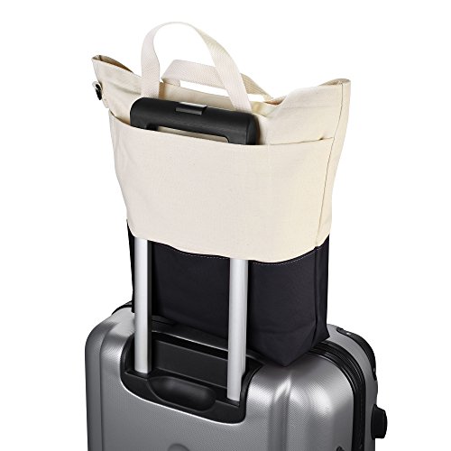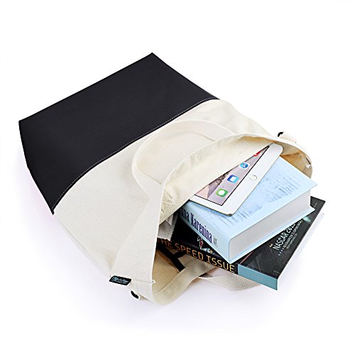 Kloud City Canvas Washable Grocery Tote Bag Bottom Waterproof Detachable Strap Shoulder Bag Foldable Multifunctional Shopping Bag (Black)