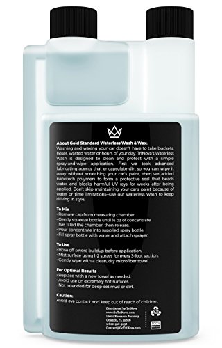 Stop wasting water and time - TriNova's waterless wash and wax will clean away dirt and grime without damaging paint and leaves an incredible shine. Not designed for caked on debris: if you've been muddin' go ahead and hose off first!