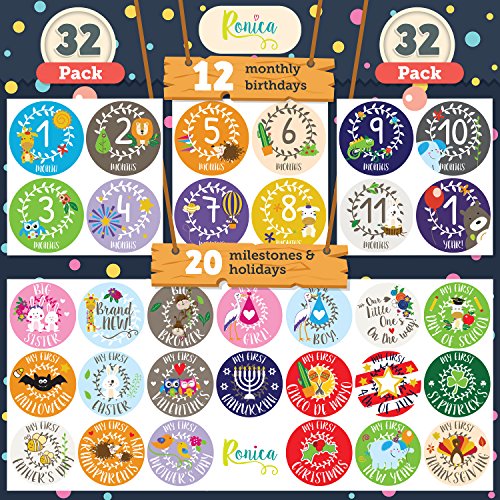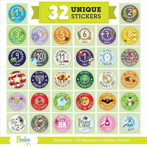 Ronica Baby Monthly Stickers- Record Growth and Other Milestones, Set of 32