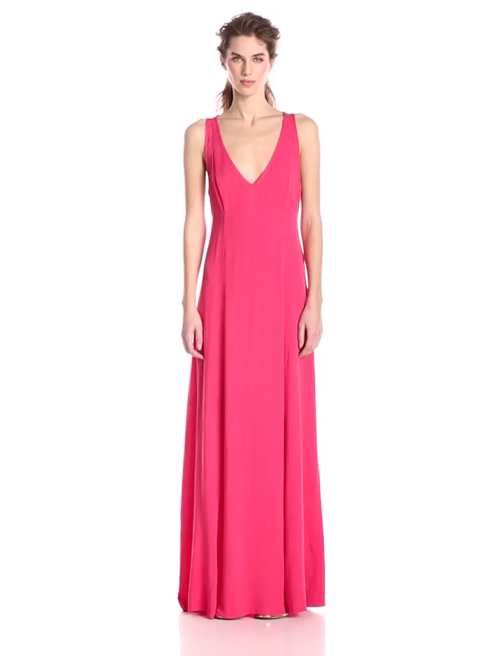 Product DescriptionDramatic cut out back maxi dress with a plunging v-neckline and hidden side zip closure.0