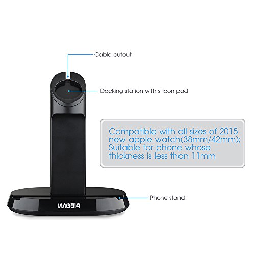 Not only allows you to put your watch on the stand while charging but also stays your phone whose thickness is less than 11mm in place, like iPhone 4/4S, 5/5S/5C,6/6 Plus/6S/6S Plus