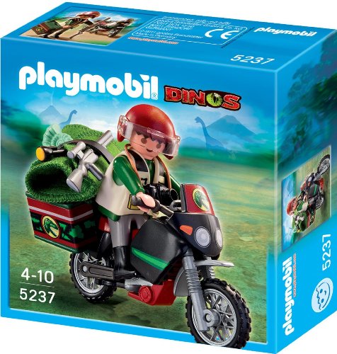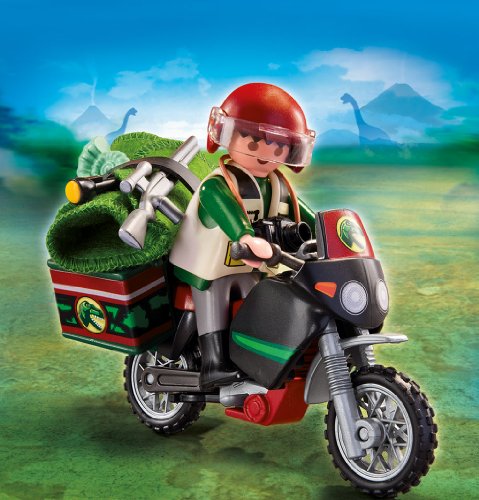 -. Feature : Take a wild adventure through prehistoric times with the Explorer with Motorcycle / Playmobil is the largest toy manufacturer in Germany / Encourages children to explore and learn while having fun / Figures can bend, sit, stand and turn their heads / Includes one figure, motorcycle, blanket, flashlight, and other accessories