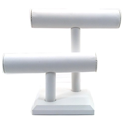 2 Tier White Leather T-Bar Bracelet Watch Jewelry Display Stand