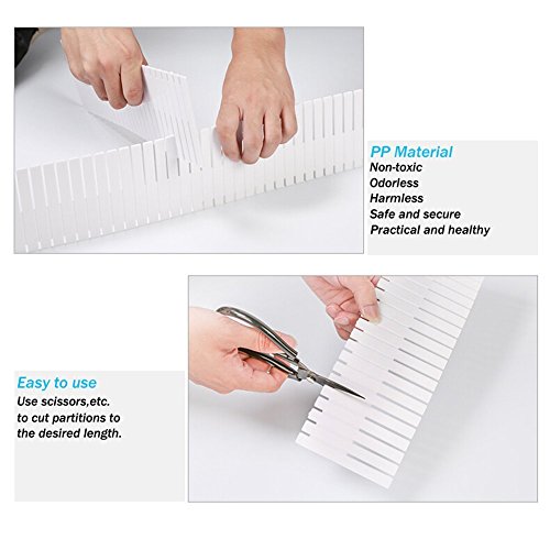 - Easy snap together assembly, and it can be cut to desired length for a perfect customized fit.You can use scissors,etc.to easily cut partitions in 7/16’’ strips,and set them anywhere-drawers of cabinet,desk,refrigerator