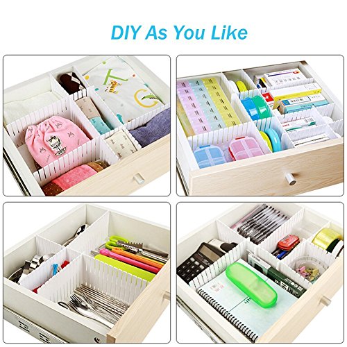 Awebuy DIY Drawer Organizer ,Customized Slotted Plastic Partitions Divider for Home Tidy Closet Stationary Makeup Socks Underwear Scarves (4 Pieces)