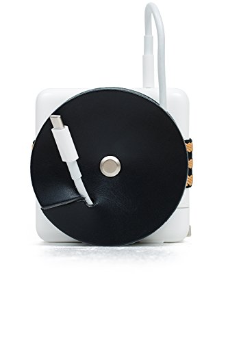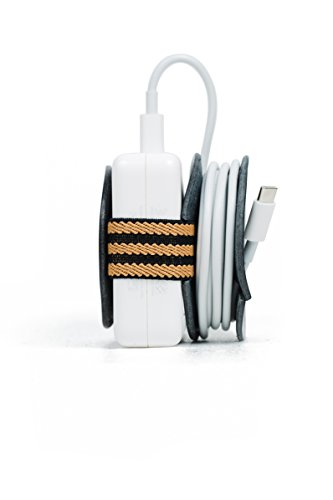 PowerPlay leather cable organizer for MacBook Pro power adapter (Black/Stripes)
