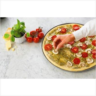 Nonstick pizza pan made of heavy-gauge, aluminized steel