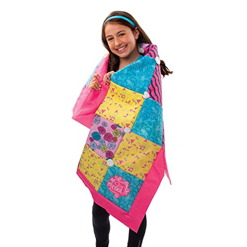 Design! Stitch! Decorate! Create a Cozy Quilt using this colorful creative fabric kit and your Sew Cool Sewing Studio. The Sew Cool Studio is simple to use, with no bobbins to wind, no needles to thread and no foot pedal. It’s never been sew easy as with Sew Cool and its special fabric. Unlike ordinary Sewing Machines, the Sew Cool Sewing Studio is designed specifically for ages 6+. First time sewers will enjoy almost instant gratification because they can do it themselves. Making the Cozy Quilt will encourage your child’s imagination and develop hand eye coordination. With the Cozy Quilt creative fabric kit, kids can easily craft and customize a beautiful quilt. Create your custom quilt using the 12 pre-cut squares and the Sew Cool sewing studio’s unique threadless technology. It’s the safe and simple way for young kids to learn new creative skills. The Cozy Quilt kit will have kids making their own custom quilt in no time! Design, stich and decorate with Sew Cool! Sew Cool Sewing Studio sold separately.Feature