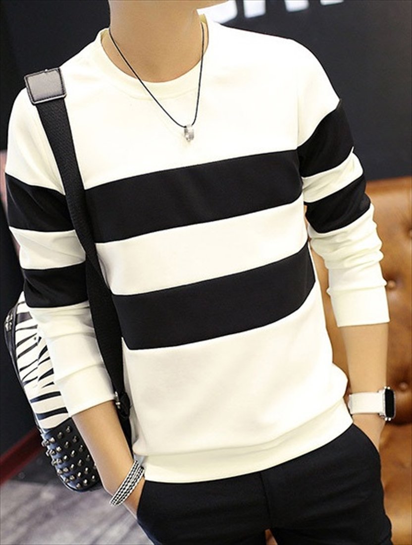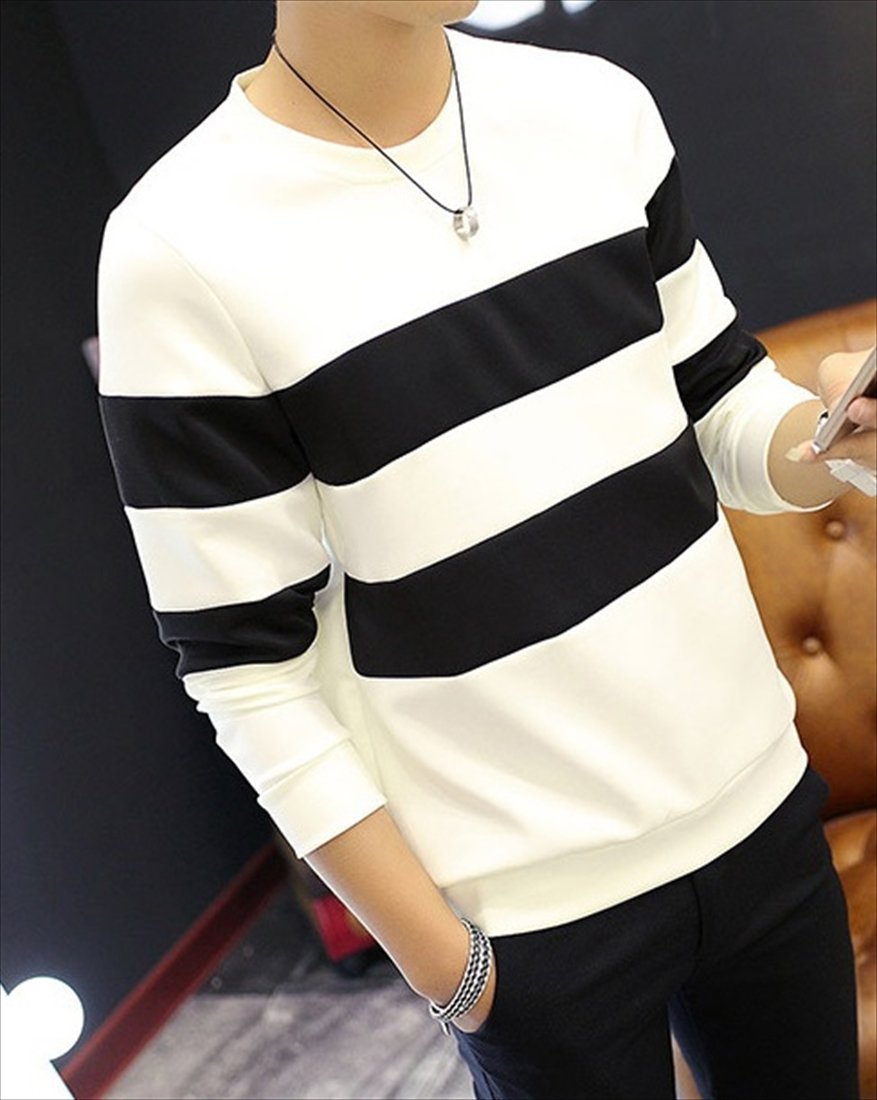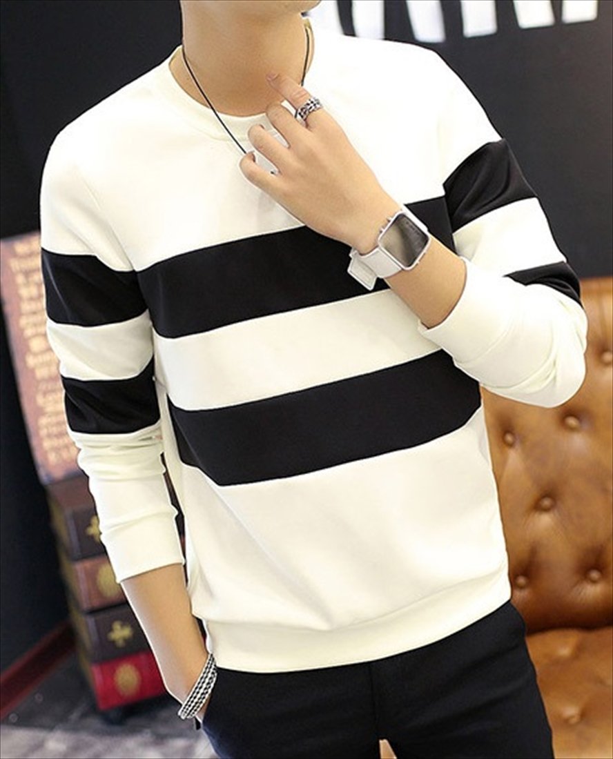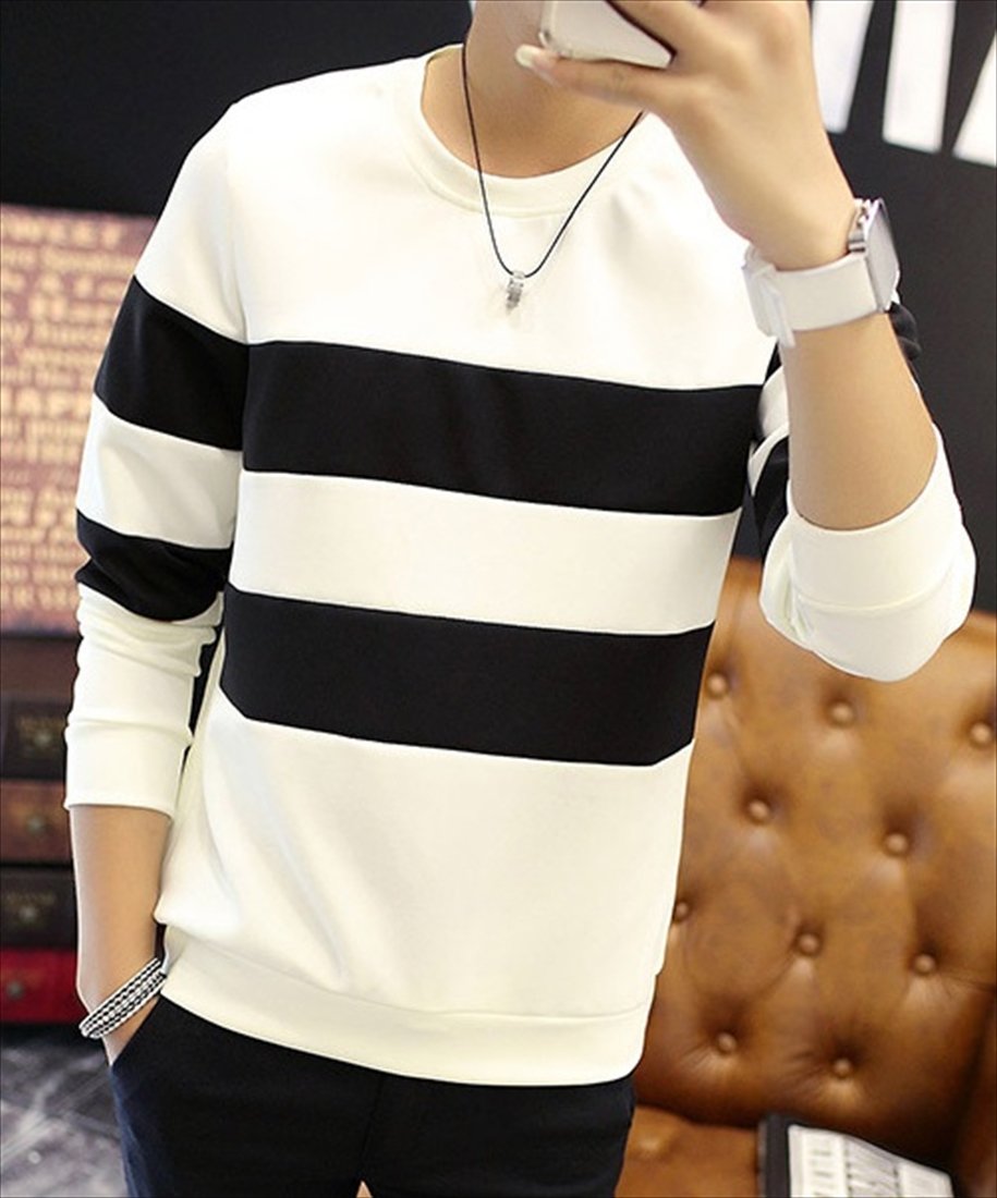 Color 2 colors [White background line / Black background line] T-shirt Long sleeve casual border T-shirt Cute cool