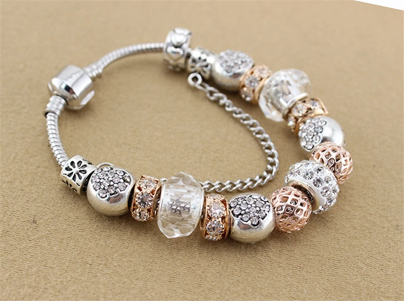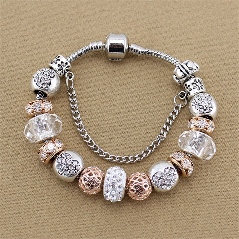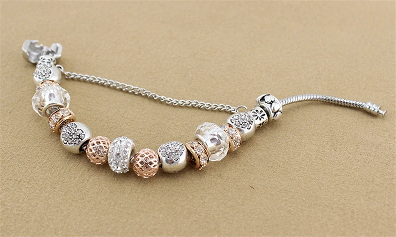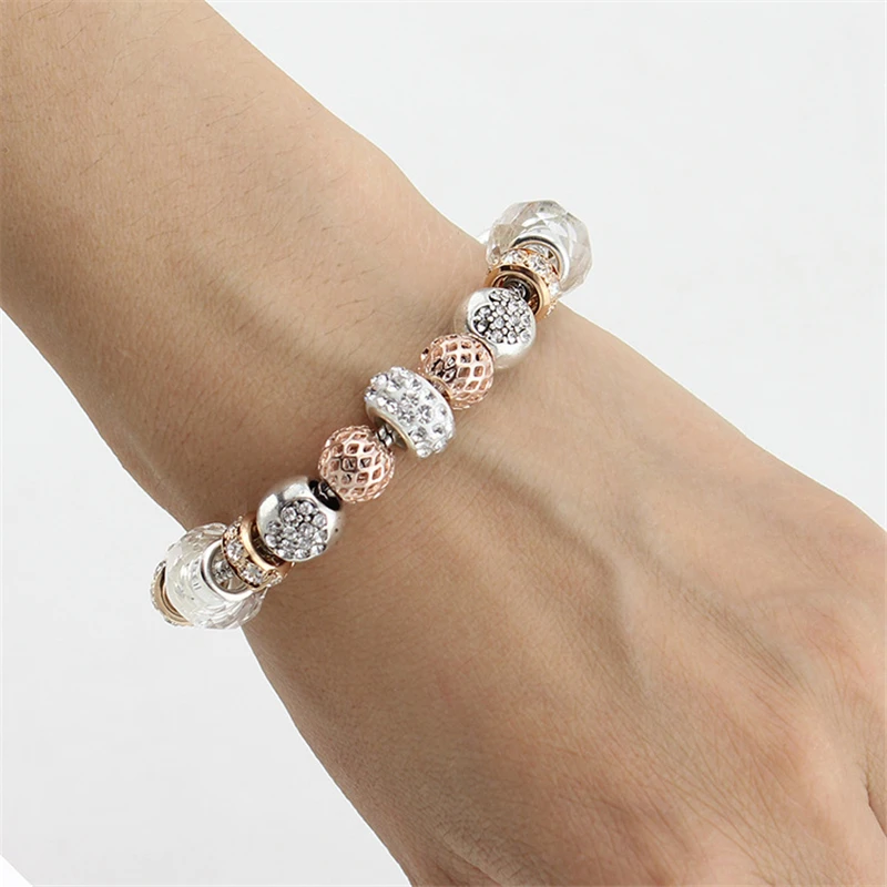 YILIANFEI White Peach Zircon Chamilia Beads DIY Fashion Cute Elegant Charm Pan Bracelets & Bangles For Women Gift BT0103