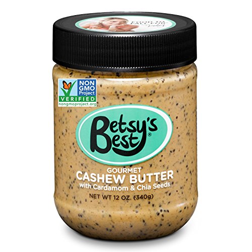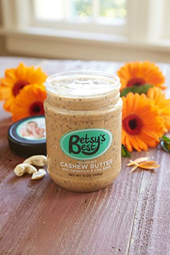 Gourmet Cashew Butter by Betsy's Best - Cardamom Flavor - Best Tasting Nut Butter for Kids Snacks Smoothies & Desserts - Non-GMO & Organic Ingredients - Chia Seeds, Honey, Stevia