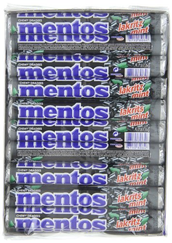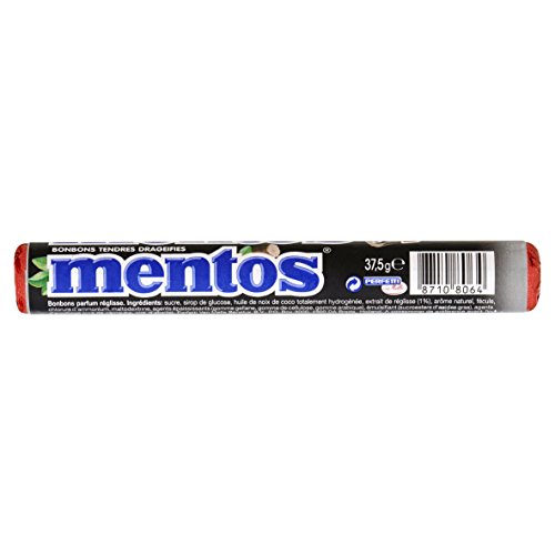 Studio : Yulo Toys Inc Publisher : Yulo Toys Inc Binding : Grocery Product Description Mentos combines the flavor of mint and licorice in a delicious and unique candy. The first chewy bite gives you a great mild mint flavor. Chew a little longer and the licorice flavor comes through. Licorice-flavored Mentos is an extraordinary treat.One roll just isn't enough. 0