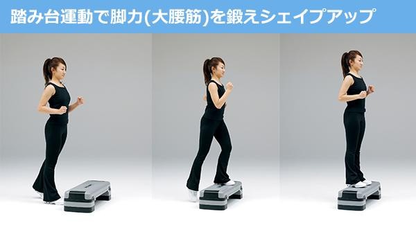 踏み台運動で脚力(大腰筋)を鍛えてシェイプアップ。台の高さは体力レベルや運動メニューによって3段階の調節が可能です。介護予防トレーニングにもおすすめです。 |