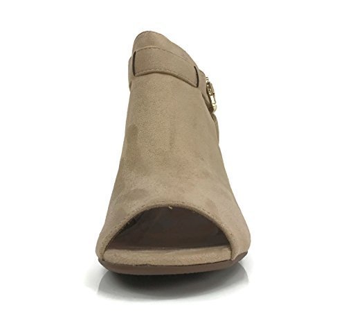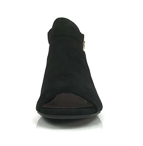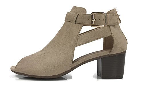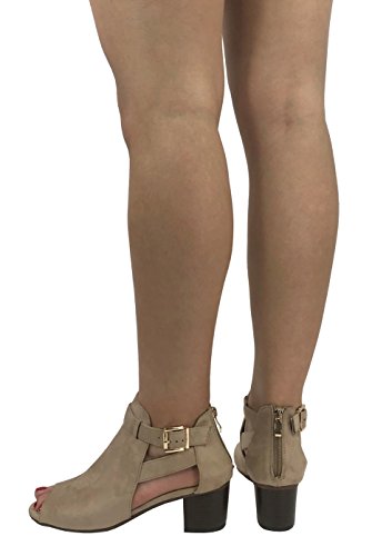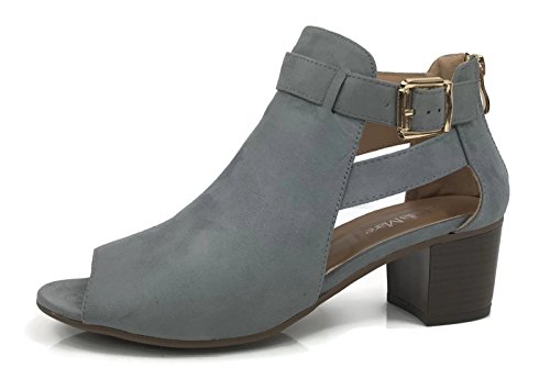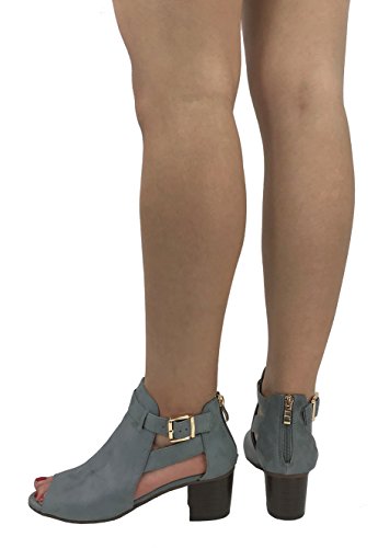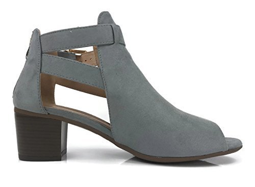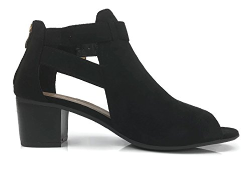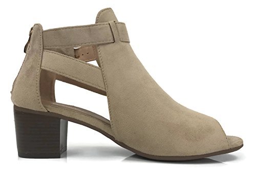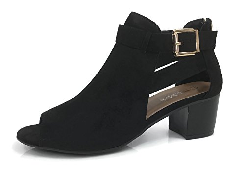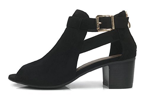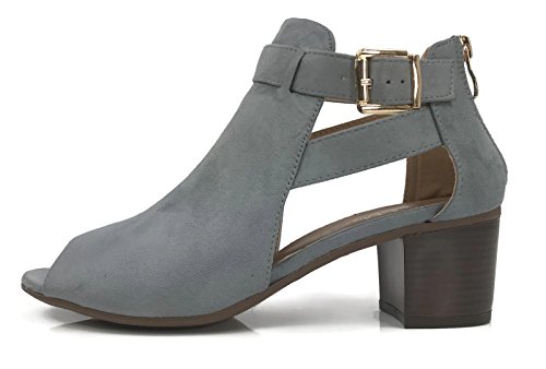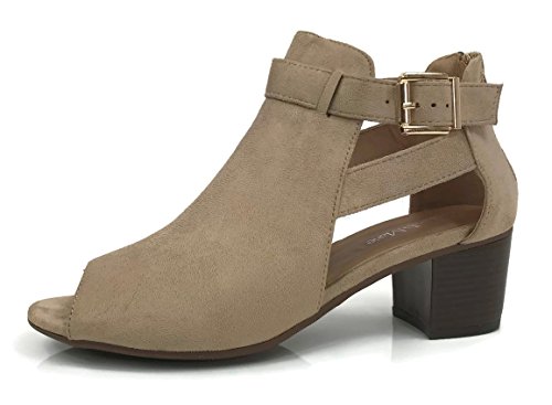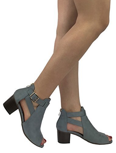 Annas Fashion Women's Ankle Bootie Cut Out Sides Open Toe Straps Mid Block Stacked Heel
