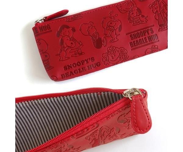 ペンが5本ほど入るコンパクトサイズのペンケースです。ハグしているスヌーピーたちの柄がかわいい♪内側のストライプ柄もおしゃれです。