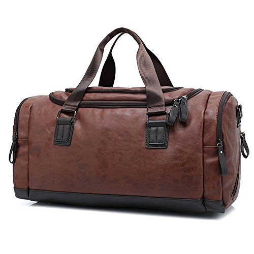 -. Feature : Material: quality PU leathersoft and durable. Size: 19.7x10.2x10.2inch/50x26x26cm. Weight: 1100g/2.4lb. / Structure: 1 main bag (2 slide pockets, 2 zipper hidden pockets), 1 top zipper bag, and 2 zipper side pockets. This duffle bag is large enough for sports, overnight stays and so on(perfect size for a car boot), strong enough to endure constant transportation. / Detachable and adjustable shoulder straps, convenient for multi carry styles (double shoulder, single shoulder and hand carry). / Designed for Sports, Gym, Travel, Carry-on, Lage, Camping, Hiking, Weekend Adventures and More. / Warm Tips: 1. The bag may got a few smell once you receive it, since it is in new condition and sealed packaged. You can put it in a ventilated place for a few hours, then the smell will fade away. 2. Please allow 1-2cm (0.4-0.8") size differences because of manual measurement.