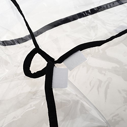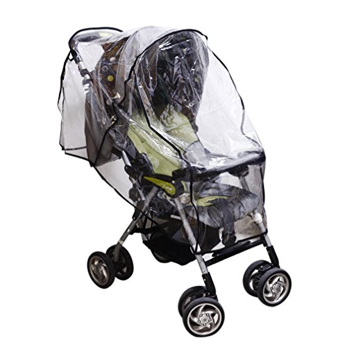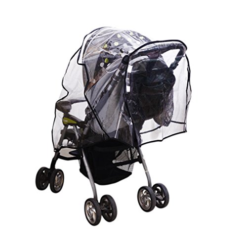 Material:PVC ; Color : Transparent and Black Side. Weatherproof rain cover / rain shield. Fits most single strollers with a canopy . Note: Cover only, Stroller not included. Air holes on both sides provides ventilation. Velcro straps allow for quick, easy attachment and removal. Waterproof and windproof protect child from rain, snow and cold weather. Accommodates most stroller makes and models.