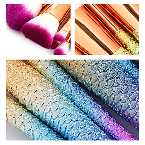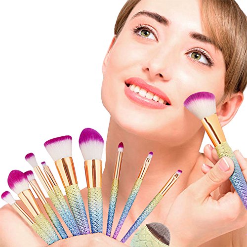 ★This mermaid make up brush tools are ideally for liquid, powder or cream cosmetics to produce a beautiful makeup. Delicate soft bristles is safe for sensitive skin and will give you a silky touch feeling.