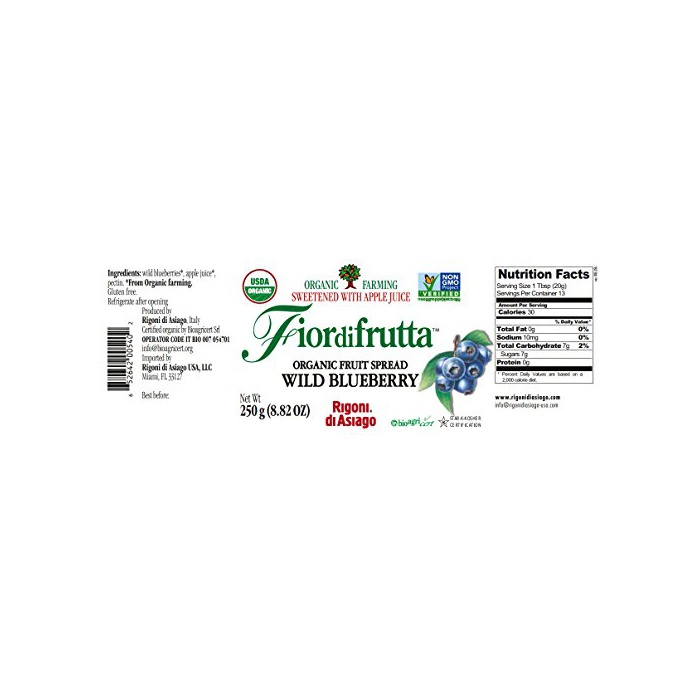 원본상품명: フィオル ディ フルッタ フルツスプレッド ブルベリ(無加糖) 250g