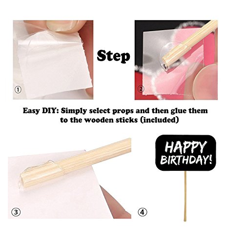 - 58pcs Photo props include : Glasses, Hat, Beard, Pipe, Mouth, ties,crown and 58pcs paste stick