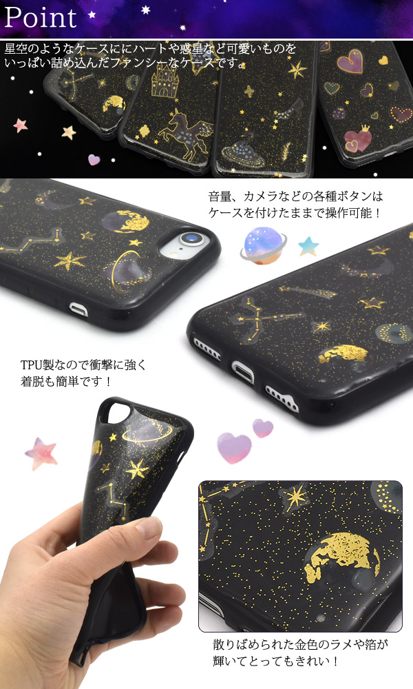 iPhone6/iPhone6s/iPhone7/iPhone8用カバープラネタリウムソフトブラックケース
