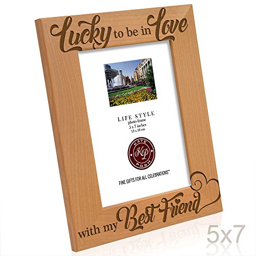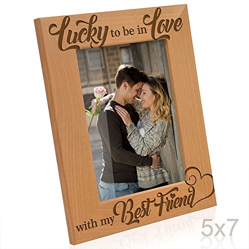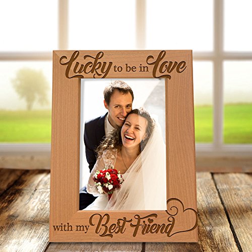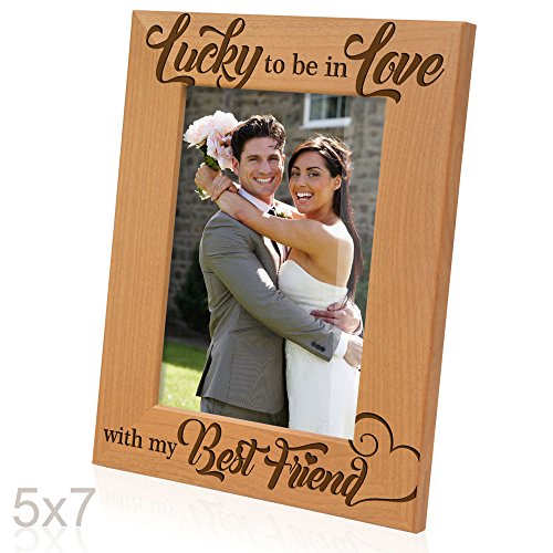Kate Posh - Lucky to be in Love with my Best Friend Picture Frame - Engraved Natural Wood Photo Frame - Wedding Gifts, Engagement Gifts, Christmas Gifts, Valentine's Day Gifts (5x7-Vertical)