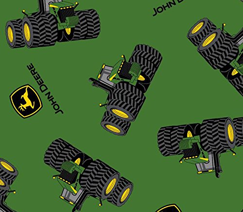 John Deere Tossed Tractor and Logo Cotton Fabric, Green