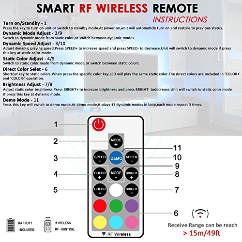 - 【Full Kit of LED Strip Lights & Package Content】 78 Inches SMD 5050 RGB Waterproof LED Strip Light + RF Wireless Remote Controller + LED Cortroller with USB Powered + Instruction Manual.