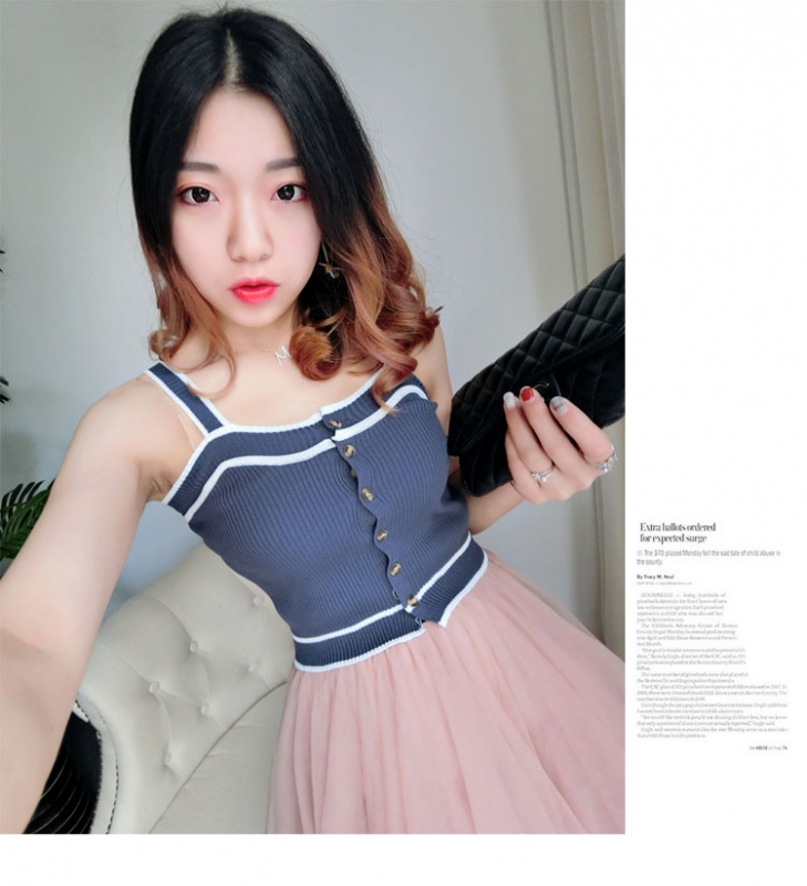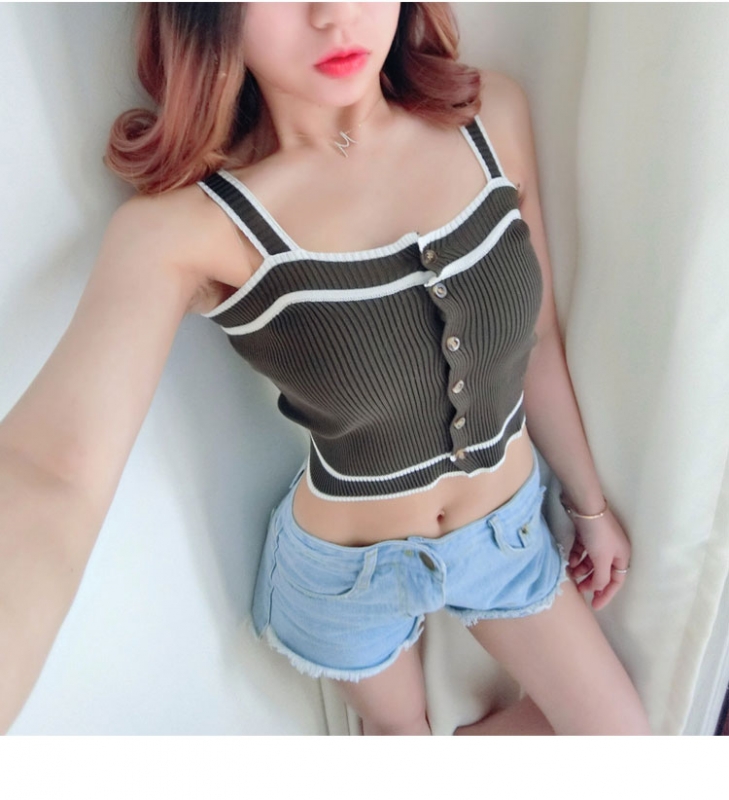 リブ、2019、キャミ、タンクトップ、ノースリーブ、、ガーリー、キュート、無地、黒、ライン、トリム、