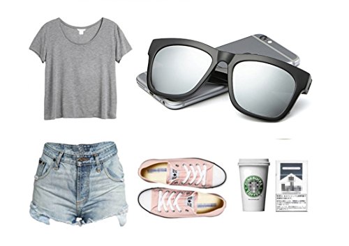 Unisex Matte Finish Vintage Sunglasses JJ33 Reflective Color Lens Square Horn Rimmed
